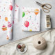 This image displays a beautiful gift wrapping paper printed with colorful celebration motifs on a white background. The design features festive shapes like balloons and confetti in shades of yellow, orange, purple, and blue, giving the paper a cheerful and lively look. This type of wrapping paper is perfect for special occasions such as birthdays or Christmas, making gifts look more attractive and festive.