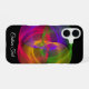 Protect your investment and accentuate your phones outer visual appeal with this iPhone 16 phone case. The creation features custom text editing on a multiple colorful geometric circular design backdrop. iPhone model case change options are available. Makes a great gift idea.