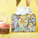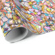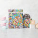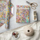 Die farbenfrohe, moderne Verpackungspapiergestaltung für Geburtstage oder andere Gelegenheiten zeichnet sich durch ein nahtloses Muster in Aquarellfarben-Blume aus. Die Hauptfarben sind in Rosa, Blau, Grün, Gelb und Weiß gehalten.