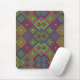 Colorful mouse pad featuring a vibrant geometric pattern of interlocking diamonds in shades of blue, green, orange, and pink, displayed on a white surface.