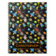 In Colorful outer space spiral notepad with astronauts, rockets, aliens, stars, ufos and planets all haben wir black milky-way fotograic background. Ideal as a birthday gift for your grandson or other family member or friend. Personalize by changing the name at the bottom.