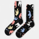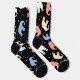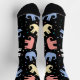 Red, yellow, blue and white pastel-colored elephants on a pair of black socks. A clear sign that you're ready for a little change in your daily routine. To see some great gray. Even if they're not as colorful in real life, the majestic elephants are always a great sight. Hit the zoo. Or, if your budget allows, take a trip to see them in a different environment. Until then, show your favorite animal on your socks.