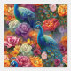 Featuring majestic peacocks with shimmering plumage nestled among a lush sea of oversized peonies and roses, this design is a celebration of nature’s most extravagant beauty.