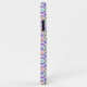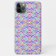 Colorful phone case with an intricate floral pattern in purple, pink, and green against a white background. It conveys a vibrant and lively feel.