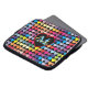 Multi colored tiny heart pattern with black background which can be customized. Personalized with name and initial inside a red heart.