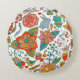 Colorful Retro Birds Flowers & Bunny Rabbits Rundes Kissen