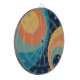 Abstract illustration of colorful retro style circles in yellow, blue, orange and turquoise colors on navy blue background