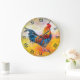 Colorful Rooster Große Wanduhr