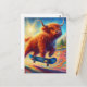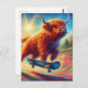 Colorful Scottish Highland Cow Skateboarding Postkarte