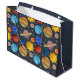 A bright, playful pattern featuring watercolor planets and stars on a dark background. Made to feel fun and full of cosmic energy.