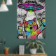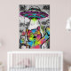 Colorful Street Art Cat with UFO Graffiti Poster