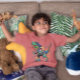 Dieser farbenfrohe, in der Straße gekleidete Dinosaurier ist ein perfektes Geschenk für Jungen. Graffiti-artige Tropffarbe