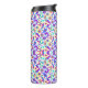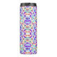 Colorful travel mug with vibrant, symmetrical floral and paisley patterns in purple, pink, blue, and green hues on a white background.