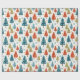 Make your holiday gifts merry and bright with this colorful wrapping paper! Stylized evergreen trees in blue, green, gold, and orange, interspersed with snowflakes, gives a retro-modern look to this paper.