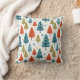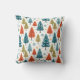 Red, gold, green, and blue stylized trees on a snowy background makes a festive and cheerful throw pillow for the holidays.