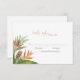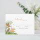 A tropical themed wedding RSVP with colorful foliage and florals