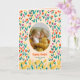 Celebrate Easter with a joyful and personal touch using this colorful spring floral photo greeting. The design features a cheerful pattern of bright tulips and spring flowers surrounding a central oval photo frame, creating the perfect space to showcase your favorite family picture. The lively floral pattern and warm spring colors bring a fresh seasonal feel that beautifully captures the happiness of Easter.