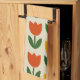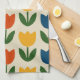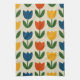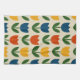 A stylized tulip pattern composed with sculptural clarity and rhythmic precision. Bold blooms in red, yellow and blue are arranged in a balanced grid over a soft beige background, creating visual harmony through repetition and contrast. The design evokes mid-century modern sensibilities with its clean lines, geometric flow, and emotionally resonant color palette.