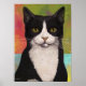 Moderne digitale Malerei einer niedlichen, schwarz-weiß Tuxedo Katze mit farbenfrohen Hintergründen. In Fotoshop CS3 gestrichen.