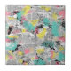 Colorful urban graffiti patchwork pattern ceramic tile featuring bold abstract blocks, expressive brush strokes, scribbles, stars, and mixed-media textures in bright blue, yellow, pink, orange, and black. Energetic and edgy with a modern street art aesthetic, this seamless design is ideal for graffiti art lovers, maximalist style fans, creative teens, and contemporary art enthusiasts.