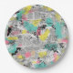 Colorful urban graffiti patchwork pattern paper plate featuring bold abstract blocks, expressive brush strokes, scribbles, stars, and mixed-media textures in bright blue, yellow, pink, orange, and black. Energetic and edgy with a modern street art aesthetic, this seamless design is ideal for graffiti art lovers, maximalist style fans, creative teens, and contemporary art enthusiasts.