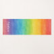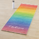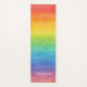 It's colorful and vibrent yoga mat design. It has watercolor wash rainbow colors which gives it fun and bright look. It also has typography script text monogram which you can easily customize with your name and create your own design.