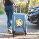 A vibrant cartoon-style cockatoo perched on a branch, featuring white plumage, blue wings, and a bold orange crest against a warm yellow circle. Bright, playful wildlife artwork suitable for branding and education.