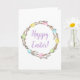 Colorful Willow Wreath And Eggs Happy Easter Karte