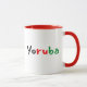 A colorful Yoruba Pan African mug, this design features "Yoruba" displayed in black, red, and green font. The inside of the mug features red with a matching red handle. Customize yours today!
