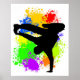 Colorsplash Breakdance Poster. Perfektes Design für begeisterte Anhänger dieser Tanzbewegung. Dieses Poster ist ein großartiges Geschenk für Breakdance- und Hip-Liebhaber und Anhänger. Silhouette gegen superhelle Farbspritzen.