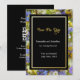 Diese schicke Hochzeitskollektion besticht durch moderne Typografie der Kalligraphie. Es hat einen einfachen Goldrahmen aus der Rose. Dieses goldene Schwarz mit wilden Blume Set ist einfach, aber elegant und trendig.