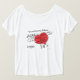Das Shirt zeigt ein Comic durch Christina Swanson, einer Frau in einem Kleidergeschäft ein riesiges rotes Herz halten, blasoniert mit den gewünschten Charaktermerkmalen, die in Colossians 3:12 aufgelistet werden. in der Front sie, fragend "haben Sie von diesen in meiner Größe?"