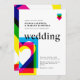 Eine modische, designgeführte Hochzeitseinladungskarte mit einem hellen Pop im CMYK-Druckstil.