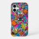 Add a playful pop of chaos to your phone. This slim-fit artistic case for the iPhone 16 case showcases a unique collage of hand-drawn cyberpunk doodles, smiling monsters, all-seeing eyes, lightning bolts, and stars in a vivid neon color palette. It is a creative and durable accessory for modern tech.
