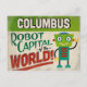 Eine lustige Reisepostkarte des Columbus Ohio-Jahrgangs mit einem freundlichen Roboter mit lustigem Retrostil, der sagt: "Kolumbus, Roboter-Hauptstadt der Welt!"