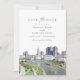 Save the Date zeigt es ein Aquarellbild der Columbus, Ohio Skyline. Editieren Sie einfach *most* um Ihren Wünschen gerecht zu werden und fügen Sie Ihr eigenes Foto oder Ihre eigenen Fotos mit Ihrer Hochzeitswebsite zur Rückseite hinzu.