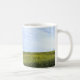 Gelbes Rübsenfeld mit blauem Himmel und weißen Wolken