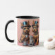 Diese faszinierende Abbildung zeigt zwei bezaubernde Yorkshire Terrier, die jeweils mit glänzenden, blauen, eleganten Hochhüten geschmückt sind. Sie befinden sich in einem eleganten, pfirsichfarbenen Raum, der von herrlicher Rokoko-Wandkunst geschmückt ist. Die Hunde mit ihrem seidigen, strahlenden Fell, das in exquisiten Details dargestellt ist, schlucken spielerisch von verzierten klassischen Teebedeckten Teebedeckten Teebedeckungen und verleihen eine Aura von raffinierter Eleganz und fröhlicher Eleganz und fröhlicher Freundschaft. In der Mitte der Szene, eine winzige Maus graziös ausgeglichen auf einer delikaten Platte verkörpert das Wesen der Freundschaft in diesem reizvollen Tableau.