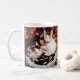 Comfy cats Tasse ist ein altes Foto von Douglas und Julia Morrills Katzen.