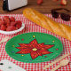 Kühne, helle Pop Kunst / Comic Buch rote Poinsettia auf einem grünen Hintergrund mit Sternen.