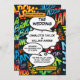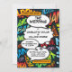 Eine lustige, coole und trendige Retro-Comic-Buch Pop kunstinspiriert Hochzeitseinladung, die die Wanne, zap, pow in jedem Superhelden Ehepaar. Persönlich gestalten Sie Ihre Hochzeitsfeierlichkeiten in modernem Text. Entwickelt von Thisisnotme©
