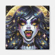Halloween-Party Magnet. Schwarz-Gold Vampir mit goldenen Reißzähnen und Augen Comic Buch Pop Kunst ai Art. Cool für Halloween oder alle, die Lieben Vampire..