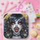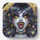 Teller aus Halloween-Party. Schwarz-Gold Vampir mit goldenen Reißzähnen und Augen Comic Buch Pop Kunst ai Art. Cool für Halloween oder alle, die Lieben Vampire..