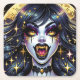 Halloween-Party Untersetzer. Schwarz-Gold Vampir mit goldenen Reißzähnen und Augen Comic Buch Pop Kunst ai Art. Cool für Halloween oder alle, die Lieben Vampire..