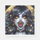 Teller aus Halloween-Party. Schwarz-Gold Vampir mit goldenen Reißzähnen und Augen Comic Buch Pop Kunst ai Art. Cool für Halloween oder alle, die Lieben Vampire..