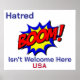 Verwenden Sie dieses Comic Stil BOOM! Hatred ist hier nicht willkommen als kühne Protestbekundung gegen die Aktionen der gegenwärtigen Regierung. Egal, ob Sie einen März tragen oder ihn an eine Wand hängen, die Botschaft ist klar.