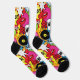 WOW! Retro Comic Buch Pop Kunst gemusterte Socken mit Cartoon-Sprechblasen, Lippen, Vinyl-Platten und Kassetten