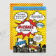 Machen Sie sich mit diesem Comic Superheroes Birthday Party Einladung für ein aktionsreiches Fest fertig! Mit kühnen Comic Buchdesigns ist es perfekt für Kinder, die Superheld-Abenteuer Liebe.