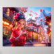 Comic Girl mit Small Hand Dragon Fantasie Poster
