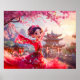 Comic Girl Tanzen mit Kirschblüten im März Poster
